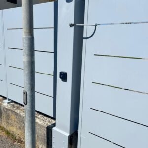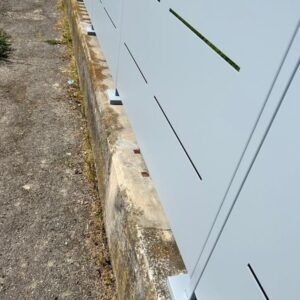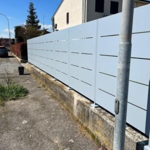 27 Luglio 2023Realizzazione di recinzione modello Mare in lamiera con cancello pedonale e cancello a due ante